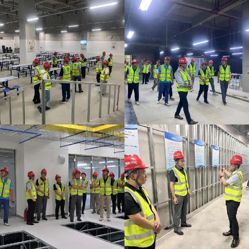 觀摩人員深入項目現(xiàn)場,實地參觀了現(xiàn)場標(biāo)準(zhǔn)化臨建、封閉式加工區(qū)、材料堆放區(qū)、安全講評臺、施工作業(yè)區(qū)、員工就餐區(qū)、辦公區(qū)、智慧化工地、高密機房樣板區(qū)等工地設(shè)施,并給予一致好評。