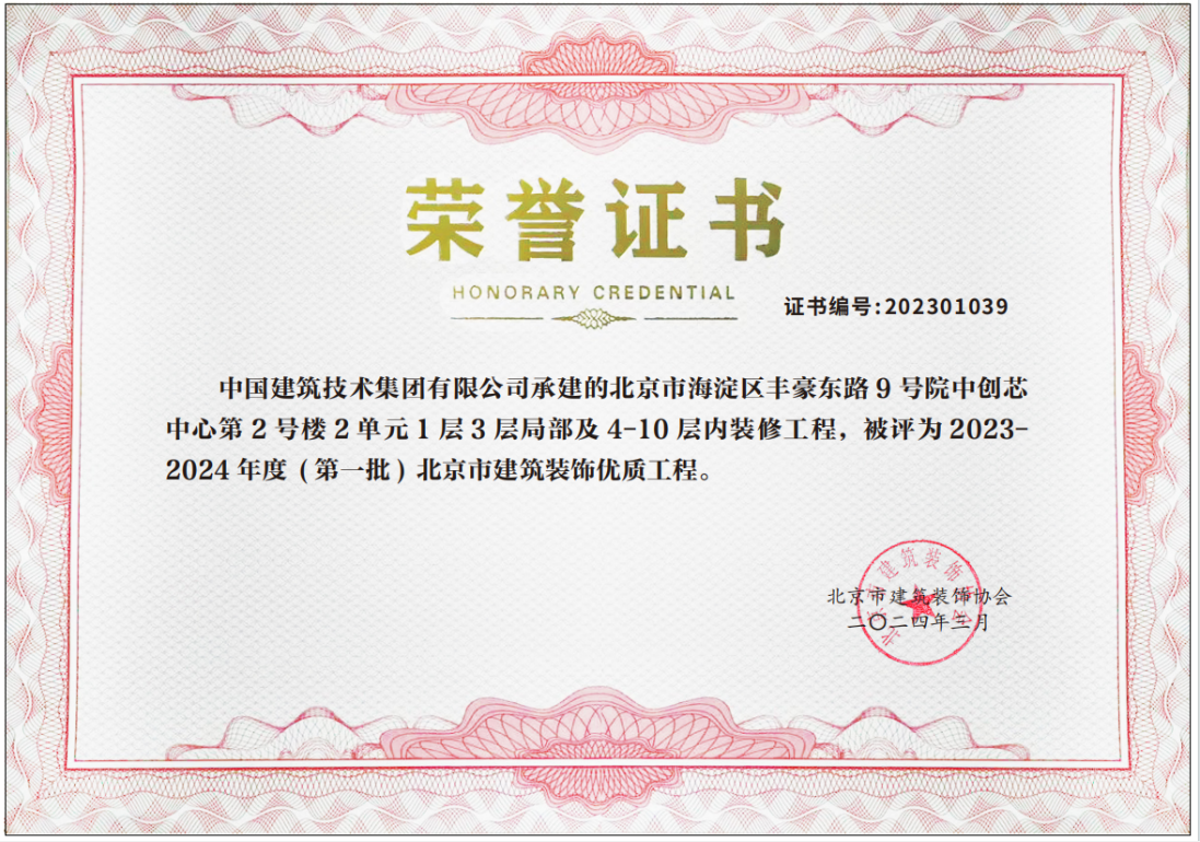 近日,由中國建技承建的麗澤商務(wù)區(qū)鼎興大廈A座房屋裝修項(xiàng)目、北京大學(xué)醫(yī)學(xué)部圖書館工程施工總承包項(xiàng)目和北京市海淀區(qū)豐豪東路9號(hào)院中創(chuàng)芯中心某公司改造項(xiàng)目榮獲2023-2024年度(第一批)北京市建筑裝飾優(yōu)質(zhì)工程獎(jiǎng)。