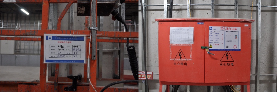 為降低因用電故障影響日常生產(chǎn)工作,臨時(shí)用電采用兩路電源供電,放射式配電,平層設(shè)置多個(gè)二級配電箱,滿足規(guī)范使用要求。