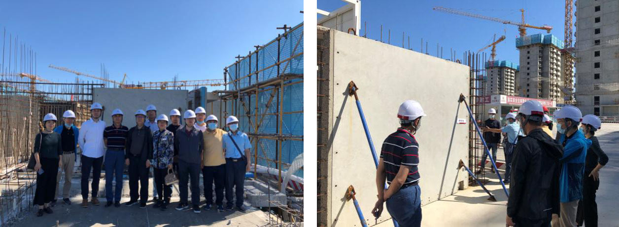項(xiàng)目負(fù)責(zé)人張捷所長(zhǎng)詳細(xì)介紹了項(xiàng)目的設(shè)計(jì)過(guò)程、設(shè)計(jì)難點(diǎn)及施工現(xiàn)場(chǎng)服務(wù)等工作,設(shè)計(jì)六所駐場(chǎng)工程師劉皓、林玉泉介紹了構(gòu)件加工與安裝情況??疾旖M現(xiàn)場(chǎng)查看了預(yù)制構(gòu)件堆場(chǎng)、預(yù)制構(gòu)件安裝與連接、預(yù)制輕質(zhì)隔墻板安裝等情況,并與工程施工及監(jiān)理單位有關(guān)負(fù)責(zé)人進(jìn)行座談,詳細(xì)了解工程施工及質(zhì)量驗(yàn)收過(guò)程中的難點(diǎn)與要點(diǎn)。施工及監(jiān)理單位對(duì)設(shè)計(jì)六所的現(xiàn)場(chǎng)服務(wù)給予了充分肯定。