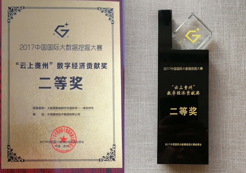 2017年12月28日,2017中國(guó)國(guó)際大數(shù)據(jù)挖掘大賽在貴州省貴陽市落幕,我公司基于大數(shù)據(jù)云平臺(tái)的智能停車項(xiàng)目--宰相停車項(xiàng)目,獲得“云上貴州-數(shù)字經(jīng)濟(jì)貢獻(xiàn)獎(jiǎng)”二等獎(jiǎng)。