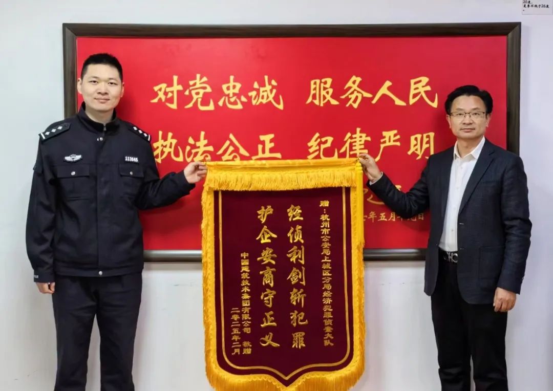 2月27日,中國(guó)建技黨委副書(shū)記、總經(jīng)理余湘北,黨委副書(shū)記、紀(jì)委書(shū)記李小陽(yáng),法務(wù)楊建旭一行專程赴杭州市上城區(qū)經(jīng)濟(jì)犯罪偵查大隊(duì),向辦案民警代表送錦旗,對(duì)經(jīng)偵大隊(duì)在偵辦中國(guó)建技原浙江分公司總經(jīng)理系列重大犯罪案件中展現(xiàn)的專業(yè)能力表示由衷欽佩,對(duì)其高效行動(dòng)致以誠(chéng)摯謝意。