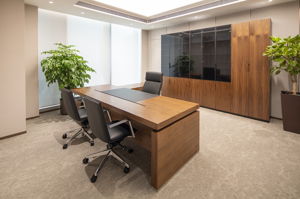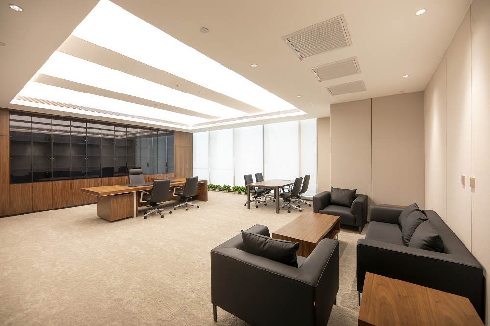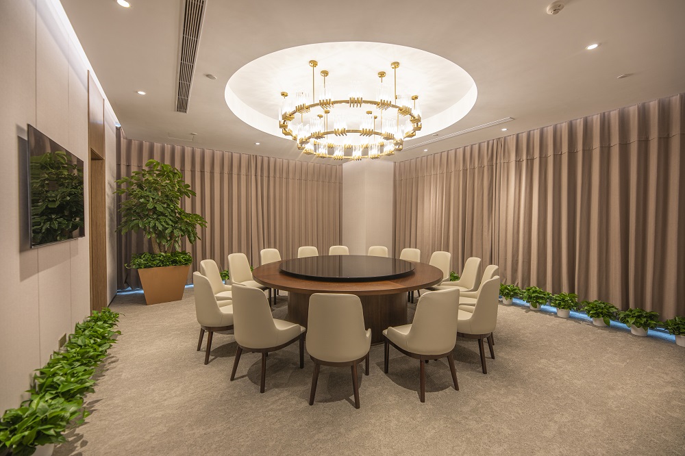 本次改造根據(jù)使用單位的需求,在維持建筑外立面和室外景觀的前提下,對(duì)原有建筑進(jìn)行了平面重新布局及裝飾裝修,并根據(jù)新的使用功能對(duì)機(jī)電系統(tǒng)進(jìn)行了調(diào)整。改造后的建筑滿足現(xiàn)行的建筑標(biāo)準(zhǔn)規(guī)范,并滿足使用方的現(xiàn)代辦公需求。以“一級(jí)央企、國(guó)內(nèi)一流、具有國(guó)際影響力”的大國(guó)企業(yè)總部形象服務(wù)全國(guó)并面向國(guó)際舞臺(tái),所以重點(diǎn)打造莊重、現(xiàn)代、統(tǒng)一、大氣、低調(diào)、品質(zhì)的空間特點(diǎn),使辦公空間代表大國(guó)形象、展示央企文化;延續(xù)傳統(tǒng)國(guó)企表現(xiàn)出的典型特征,提升內(nèi)部空間整體品質(zhì)。圍繞設(shè)計(jì)理念構(gòu)思方案,把握規(guī)劃布局的宏觀標(biāo)準(zhǔn),定位企業(yè)形象,提煉設(shè)計(jì)手法,營(yíng)造空間氛圍;對(duì)大廳、會(huì)議、報(bào)告廳、會(huì)客、餐廳、辦公等重點(diǎn)空間深化設(shè)計(jì)匹配一級(jí)央企的總部形象。