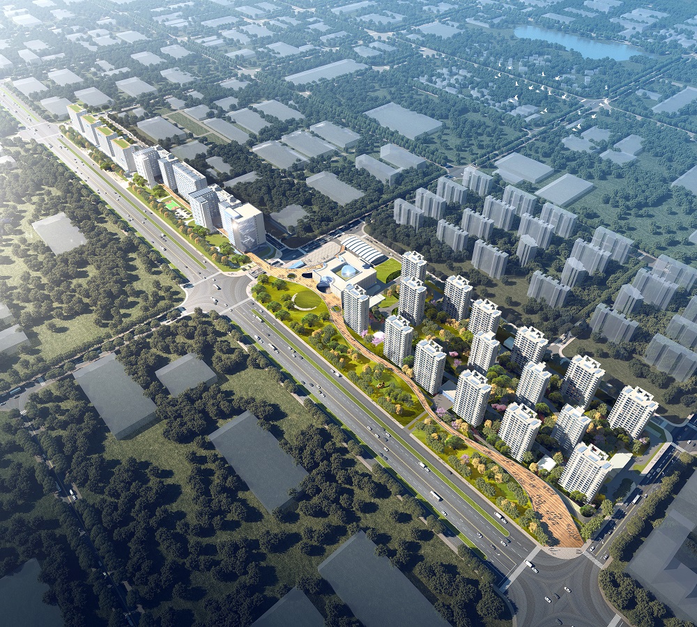 江山市特色生態(tài)產(chǎn)業(yè)平臺(tái)城南鄰里中心項(xiàng)目位于江山市城南工業(yè)園核心位置,沿蓮華山大道北側(cè)展開(kāi),項(xiàng)目分為東、西兩片,包括產(chǎn)業(yè)鄰里中心、職工公寓、人才社區(qū)和配套公交首末站等四大功能板塊??傆玫孛娣e約10萬(wàn)㎡,總建筑面積約27萬(wàn)㎡。 經(jīng)公開(kāi)招標(biāo)和多輪比選,我院最終取得規(guī)劃和建筑方案設(shè)計(jì)權(quán)。