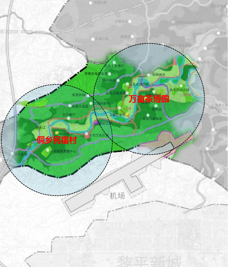 項(xiàng)目地處湘、黔、桂三?。▍^(qū))交界的侗鄉(xiāng)腹地,黎平侗鄉(xiāng)風(fēng)景名勝區(qū)北部,以八舟河、天生橋景區(qū)為核心,基地南北長(zhǎng)11600米,東西長(zhǎng)14400米,總面積約53平方公里。