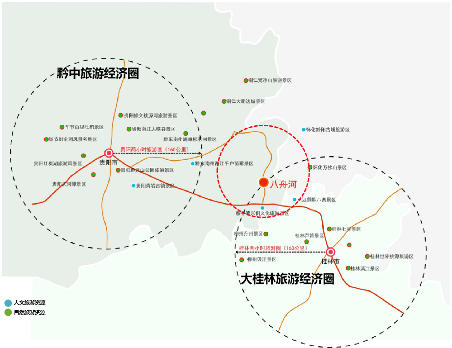 八舟河景區(qū)山水資源豐富、溪流密布,集巖溶地貌、田園溪流、河湖森林等自然景觀為一體,同時(shí)也是白茶重要產(chǎn)地之一、生長(zhǎng)著多種異花異草、名貴中草藥材,具有很高的觀賞價(jià)值、科學(xué)價(jià)值、游憩價(jià)值。同時(shí),項(xiàng)目地處黔中旅游圈層及大桂林旅游圈層兩小時(shí)旅游圈外圍,通過(guò)打造旅游度假綜合體恰好彌補(bǔ)了“貴州—桂林”兩小時(shí)旅游圈市場(chǎng)的空白。