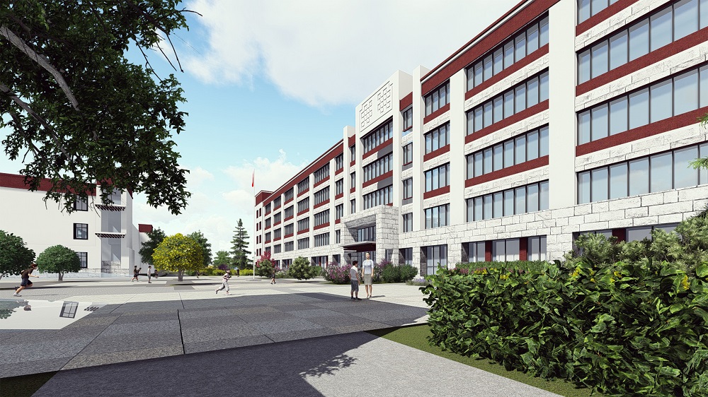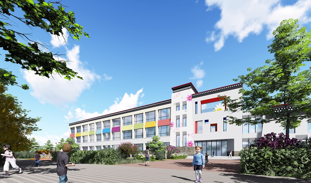 幼兒園建設(shè)響應(yīng)國(guó)家相關(guān)政策,為幼兒提供獨(dú)具特色空間的環(huán)境,堅(jiān)持美觀的同時(shí),又能滿足使用功能的合理性。整體設(shè)計(jì)以現(xiàn)代簡(jiǎn)潔的處理手法,在充分考慮經(jīng)濟(jì)及美觀性的前提下,體現(xiàn)藏區(qū)建筑特色。立面采用虛實(shí)結(jié)合的處理手法,以橫向線條體聯(lián)系建筑各個(gè)部分,強(qiáng)調(diào)活動(dòng)單元體量,創(chuàng)造富有秩序的立面節(jié)奏,通過(guò)明確的進(jìn)退關(guān)系區(qū)分各功能區(qū)塊的轉(zhuǎn)換,塑造強(qiáng)烈的光影變化,為孩子提供自由靈活的生活活動(dòng)場(chǎng)所。
