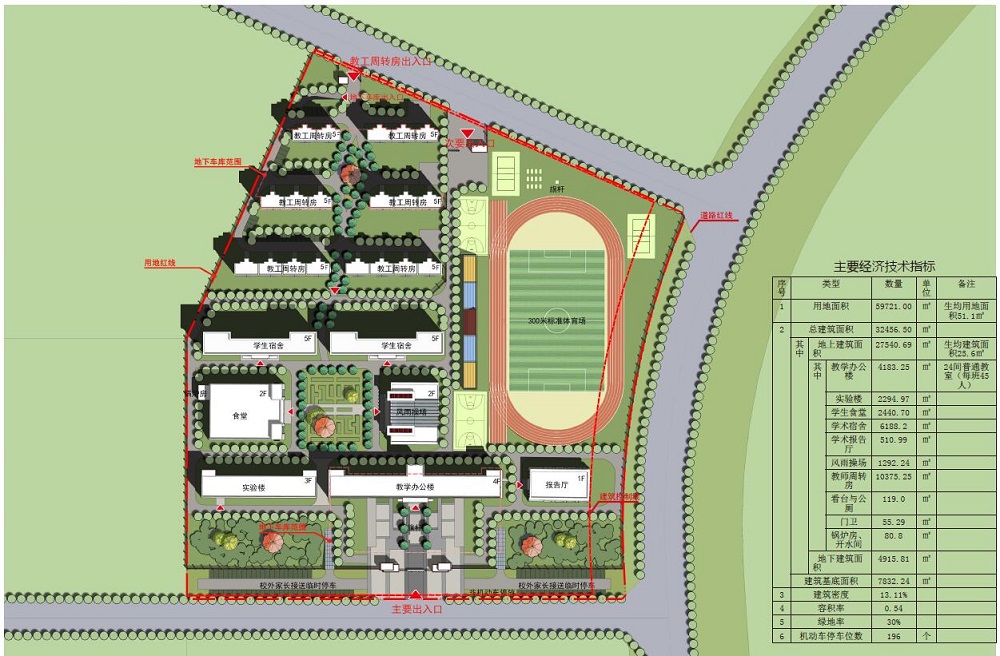 ???本項(xiàng)目用地位于日喀則市經(jīng)濟(jì)開(kāi)發(fā)區(qū),辦學(xué)規(guī)模為24班的小學(xué),包括教學(xué)樓、實(shí)驗(yàn)樓、食堂、風(fēng)雨操場(chǎng)、宿舍樓等建筑。規(guī)劃建設(shè)用地為59721㎡,建筑總面積為32456.5㎡,其中地上建筑面積27540.69㎡,地下建筑面積4915.81㎡。建筑密度13.11%,容積率0.54,綠地率30%,機(jī)動(dòng)車(chē)停車(chē)位數(shù)196個(gè)。南側(cè)、東側(cè)、北側(cè)為規(guī)劃道路,西側(cè)緊鄰規(guī)劃曲布幼兒園和園丁苑。