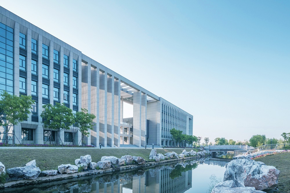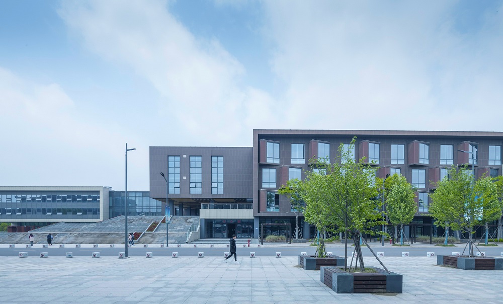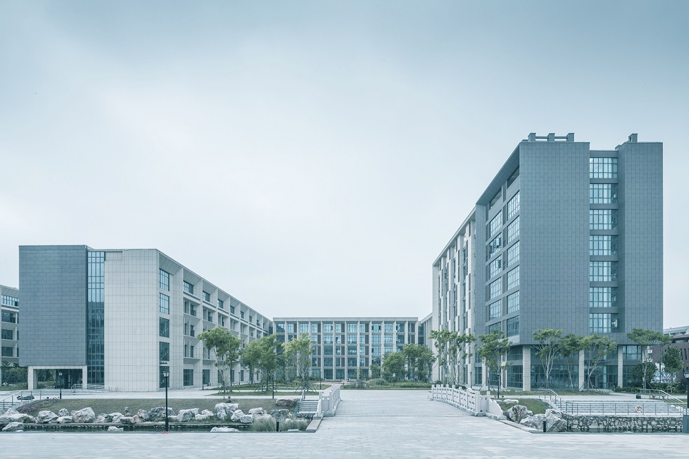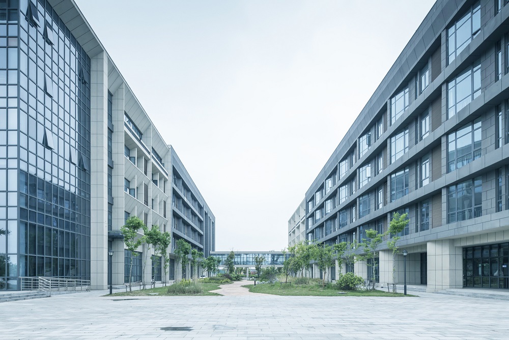 建筑設(shè)計秉承傳承與創(chuàng)新的核心理念。研究高等教育起源校園規(guī)劃手法與東西方校園開放空間策略,奠定校園核心區(qū)域教學(xué)區(qū)、實訓(xùn)區(qū)基調(diào)。教學(xué)區(qū)嚴謹莊重,打造軸線分明的共享空間,視為傳承;實訓(xùn)區(qū)流動拓展,打造平等、自由、交流、學(xué)習(xí)的氛圍,視為創(chuàng)新。結(jié)合江蘇泰州當?shù)亟ㄖ伾c現(xiàn)代校園色彩體系,體系校園的文化與嚴謹。